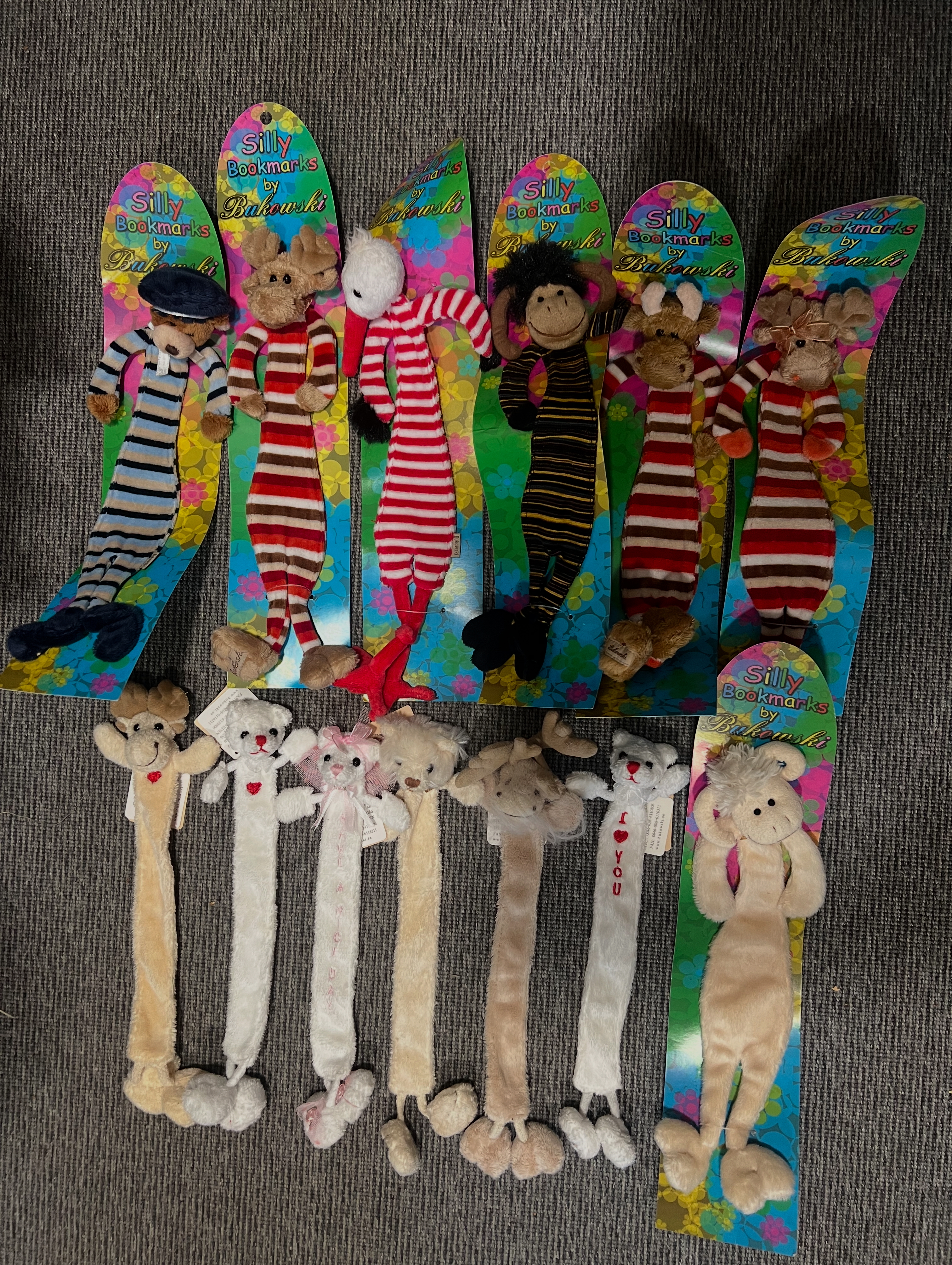 Bukowski-kirjanmerkkejä erilaisissa eläinhahmoissa kauniissa vaatteissa, synteettisistä materiaaleista. Mainitse lisätiedoissa haluamasi hahmo.